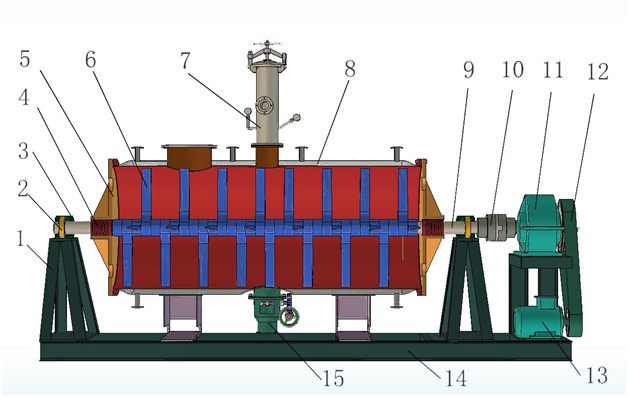 l  主軸有實心和空心兩種結構,可采用空心,與夾套一同加熱,增大了加熱面積,提高了干燥效率。