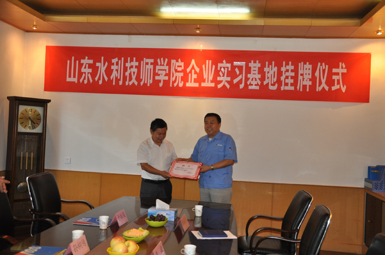 公司與山東省水利技師學(xué)院教學(xué)實(shí)習(xí)基地“校企合作協(xié)議書”,于9月18日在省水利技師學(xué)院簽訂,同時(shí)公司董事長(zhǎng)、總經(jīng)理黃毅被省水利技師學(xué)院聘為兼職教授。